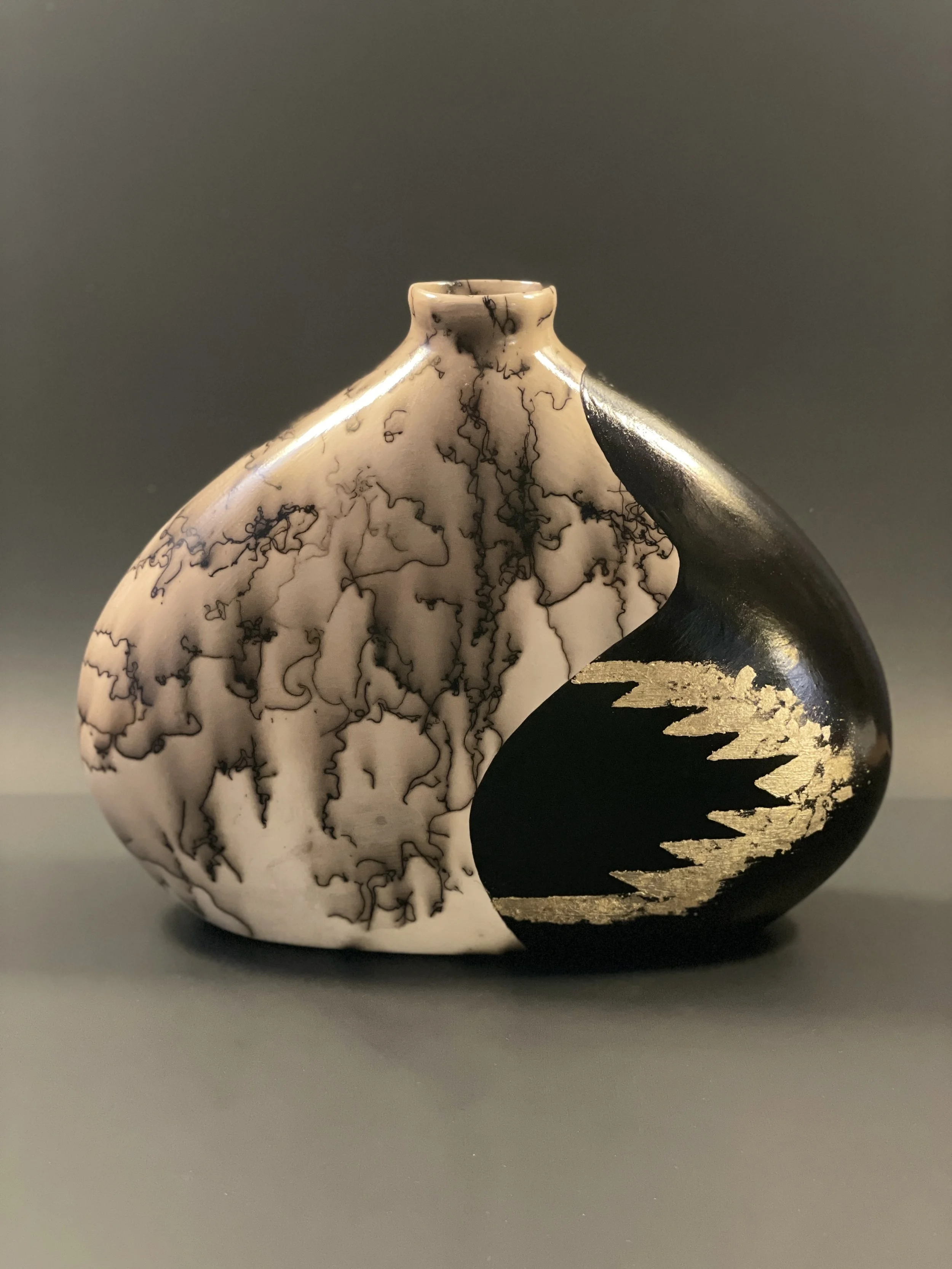 Made with the traditional, Navajo Horse Hair Firing technique, my pottery carries the spirit of my ancestral lands and the sacred connection between horse and man. This ancient method, combined with the bold, geometric patterns of African mudcloth, creates a unique fusion of cultures that celebrates resilience, beauty, and harmony.
